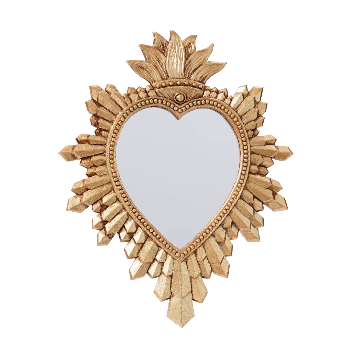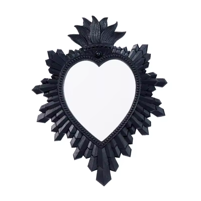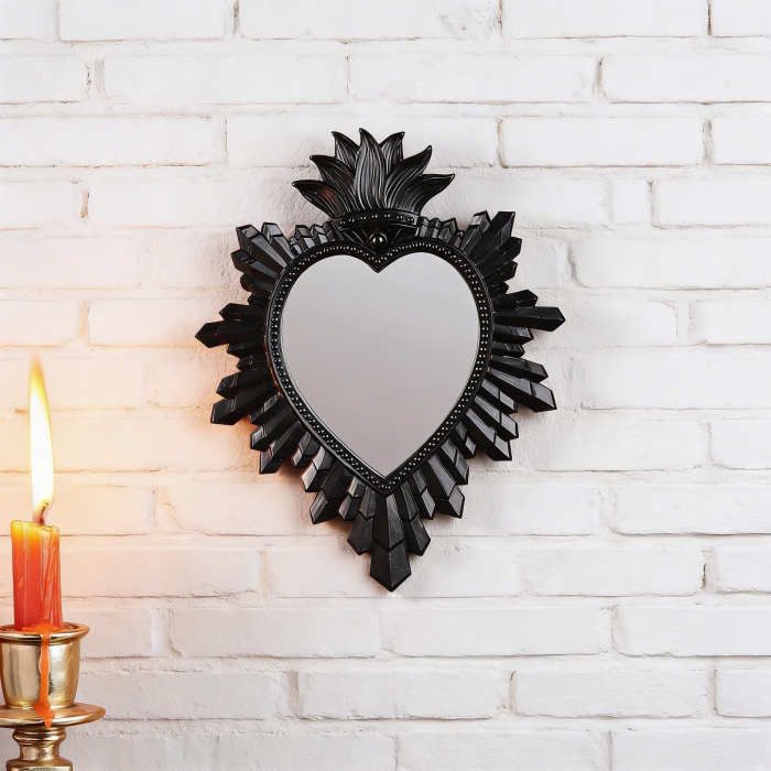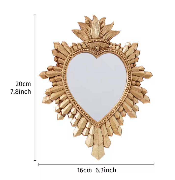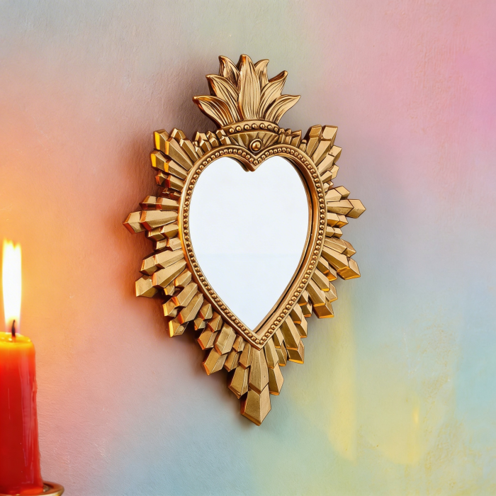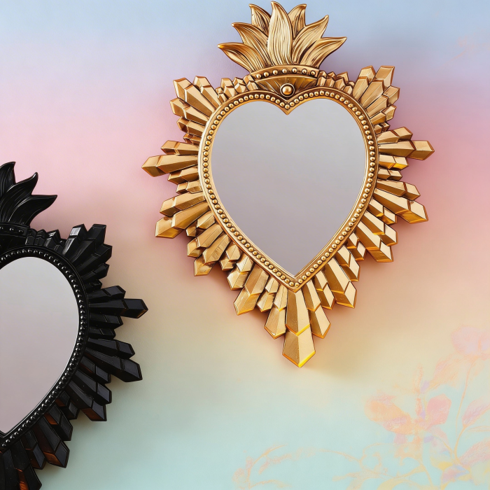 Ignite your space with the Inferno Love Mirror, a striking decorative piece that celebrates passion and devotion. Featuring a bold flame-adorned sacred heart design, this mirror brings warmth and romantic energy to any room. Perfect for those seeking to express their aesthetic sensibilities, it combines functional reflection with meaningful symbolism. Whether displayed in a bedroom, living area, or personal sanctuary, this unique mirror serves as both a conversation starter and a daily reminder of what matters most. Transform your walls into a gallery of self-expression with this captivating accent piece.
