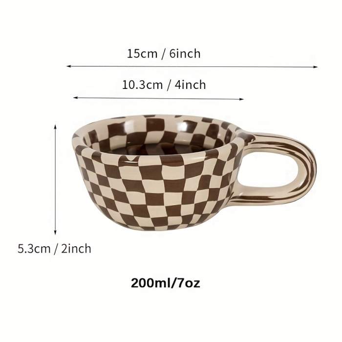 Elevate your daily routine with this charming ceramic mug featuring a timeless checkered pattern. Perfect for coffee, tea, or your favourite warm beverage, it brings understated elegance to your kitchen and workspace. The classic design complements any aesthetic room décor, whether your style leans minimalist, vintage, or contemporary. Durable ceramic construction ensures lasting quality, while the comfortable grip makes it a pleasure to hold. A thoughtful addition to your home that combines functionality with visual appeal.
