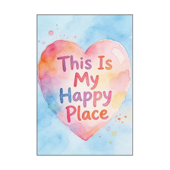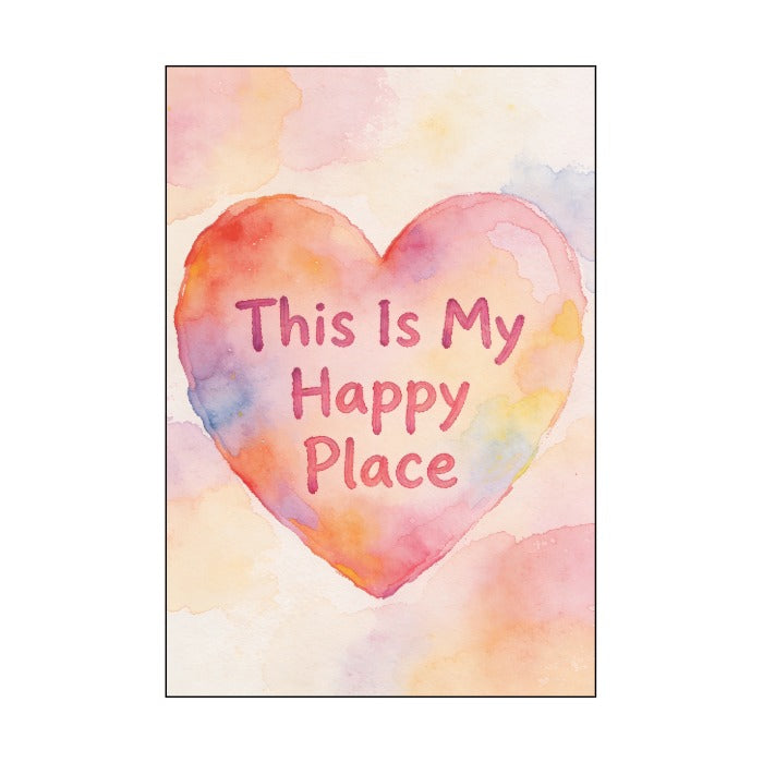 My Happy Place Heart Poster. Transform your space into a sanctuary with this charming heart poster featuring the uplifting "This Is My Happy Place" quote. Perfect for aesthetic bedroom or any corner that deserves a dose of positivity, this aesthetic wall decor piece celebrates self-care and personal comfort. The gentle heart design paired with meaningful words creates an inviting focal point that reminds you to prioritize your wellbeing. Ideal for anyone seeking to cultivate a nurturing environment that reflects their values and brings daily joy.
