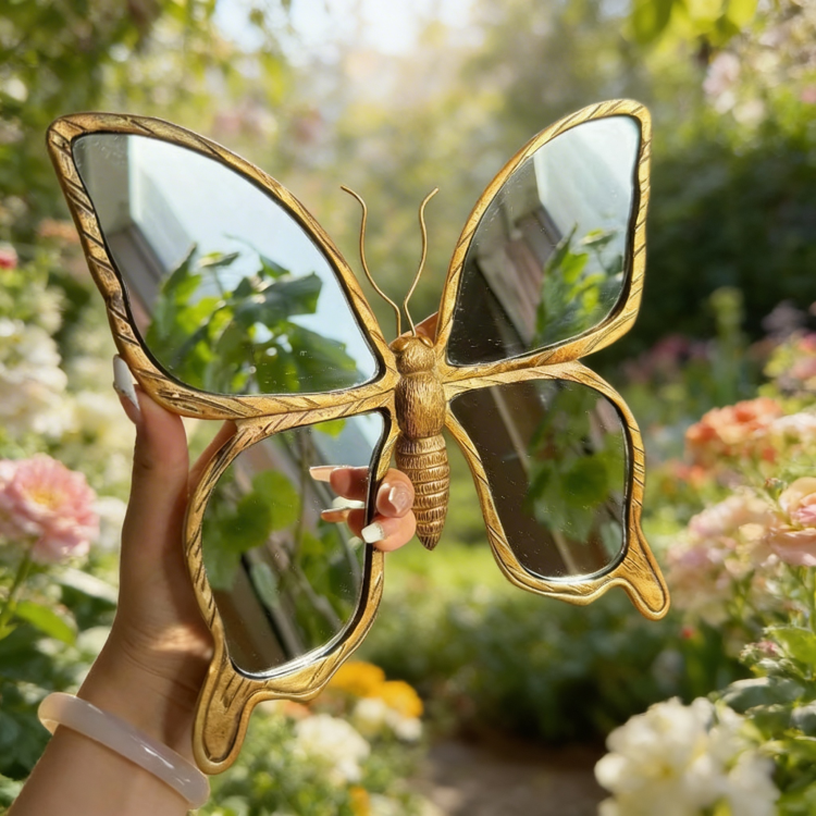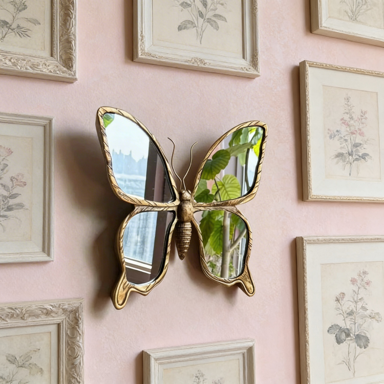 Butterfly-shaped mirror with gold frame | Butterfly Glow Mirror | Aesthetic Mirror
